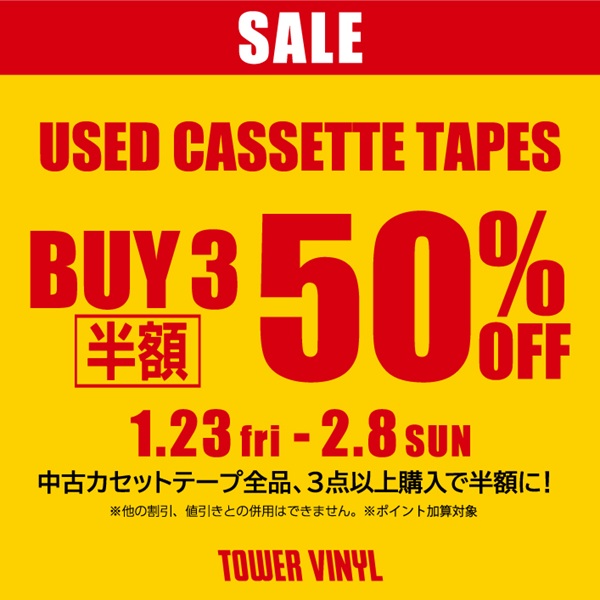 【割引セール】BUY 3 USED CASSETTE TAPES 50%OFF(開催期間:1/23(金)~2/8(日))