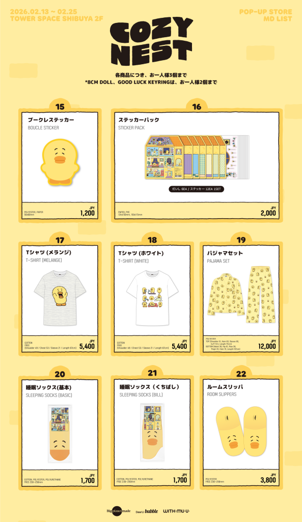 ・商品及び特典に不良がある場合、ポップアップ運営期間内の店舗会場でのみ交換可能です。ご購入後は必ず商品をご確認ください。